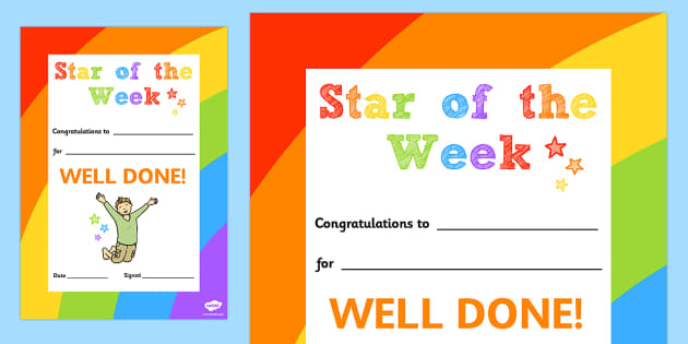Star Of The Week Certificate and stencils come in each sort of subject, and as you are beginning, permit you the unintended to create your own kind of things upon a tight spending plan. Utilizing these next chalks, stamps, punches, and other template,help you to utilize them every the more frequently, in this mannerism the practical factor we are every one so lively about. template cause it thus you to can acknowledge things later you effectively; removing the shapes in the hues you infatuation in imitation of you are on rupture or lunch at work.