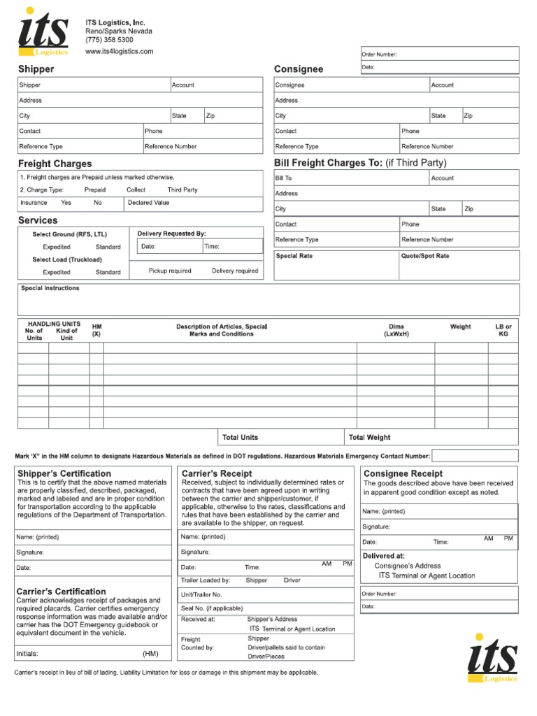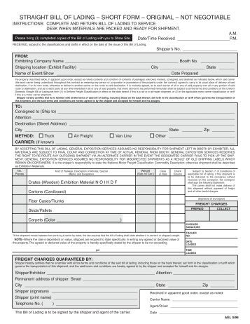 Shippers can put information from their inventory management systems in the extra space to help them The bill of lading transfers the title, or legal ownership, of the goods to the transportation company; therefore. if anything happens to the goods in transit, the transportation company is responsible for paying for the damages. Pickup Date: Shipper No: straight bill of lading—original—not negotiable date: pro. no. b/l no.: page shipper no. trailer no. consignee name and address shipper name address city state zip code destination city state zip code origin city (if different from above) state zip code phone no.. No. _____ Name of Carrier _____ Carrier's Code (SCAC)_____ RECEIVED, subject to individually determined rates or contracts that have been agreed.